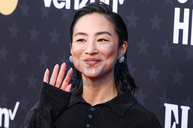 SANTA MONICA, LOS ANGELES, CALIFORNIA, USA - JANUARY 14: Greta Lee wearing a Loewe dress and Tiffany and Co. jewelry arrives at the 29th Annual Critics' Choice Awards held at The Barker Hangar on January 14, 2024 in Santa Monica, Los Angeles, California, United States., Credit:Xavier Collin / Avalon