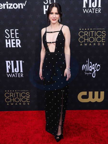 SANTA MONICA, LOS ANGELES, CALIFORNIA, USA - JANUARY 14: Rachel Brosnahan wearing Givenchy with jewels from Pomellato and shoes from Andrea Wazen arrives at the 29th Annual Critics' Choice Awards held at The Barker Hangar on January 14, 2024 in Santa Monica, Los Angeles, California, United States., Credit:Xavier Collin / Avalon