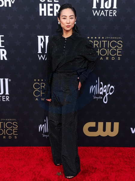 SANTA MONICA, LOS ANGELES, CALIFORNIA, USA - JANUARY 14: Greta Lee wearing a Loewe dress and Tiffany and Co. jewelry arrives at the 29th Annual Critics' Choice Awards held at The Barker Hangar on January 14, 2024 in Santa Monica, Los Angeles, California, United States., Credit:Xavier Collin / Avalon