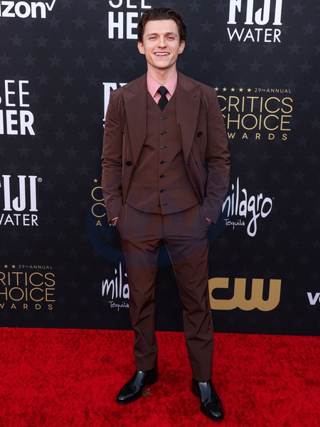 SANTA MONICA, LOS ANGELES, CALIFORNIA, USA - JANUARY 14: Tom Holland wearing Prada arrives at the 29th Annual Critics' Choice Awards held at The Barker Hangar on January 14, 2024 in Santa Monica, Los Angeles, California, United States., Credit:Xavier Collin / Avalon