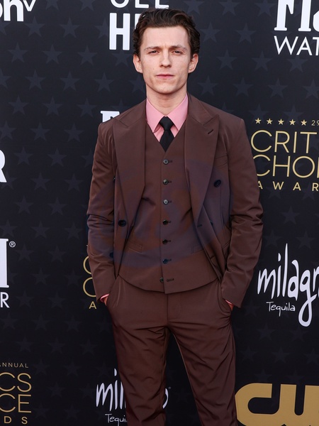 SANTA MONICA, LOS ANGELES, CALIFORNIA, USA - JANUARY 14: Tom Holland wearing Prada arrives at the 29th Annual Critics' Choice Awards held at The Barker Hangar on January 14, 2024 in Santa Monica, Los Angeles, California, United States., Credit:Xavier Collin / Avalon