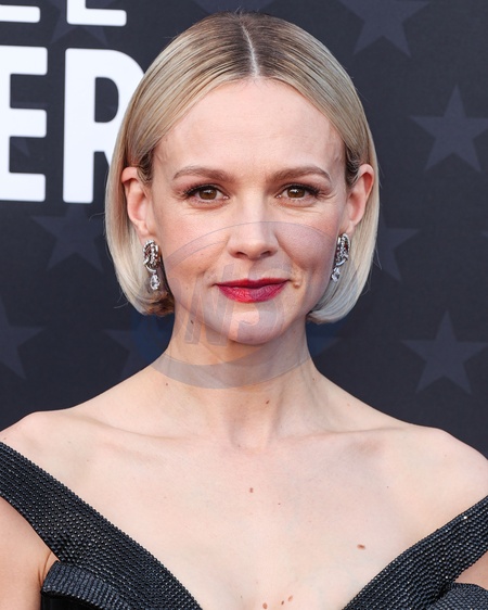 SANTA MONICA, LOS ANGELES, CALIFORNIA, USA - JANUARY 14: Carey Mulligan wearing Armani Prive and Tiffany and Co. jewelry arrives at the 29th Annual Critics' Choice Awards held at The Barker Hangar on January 14, 2024 in Santa Monica, Los Angeles, California, United States., Credit:Xavier Collin / Avalon