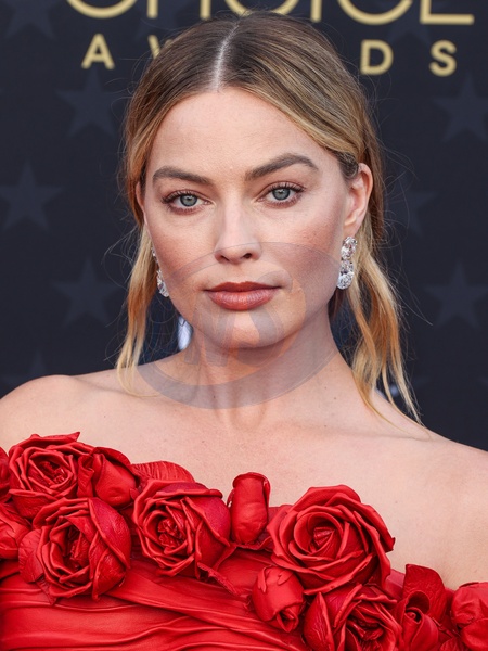 SANTA MONICA, LOS ANGELES, CALIFORNIA, USA - JANUARY 14: Margot Robbie wearing custom Balmain arrives at the 29th Annual Critics' Choice Awards held at The Barker Hangar on January 14, 2024 in Santa Monica, Los Angeles, California, United States., Credit:Xavier Collin / Avalon