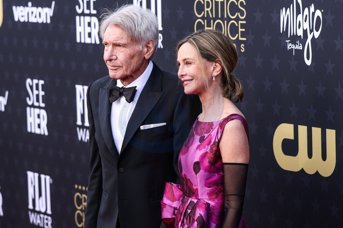 SANTA MONICA, LOS ANGELES, CALIFORNIA, USA - JANUARY 14: Harrison Ford and wife Calista Flockhart arrive at the 29th Annual Critics' Choice Awards held at The Barker Hangar on January 14, 2024 in Santa Monica, Los Angeles, California, United States., Credit:Xavier Collin / Avalon