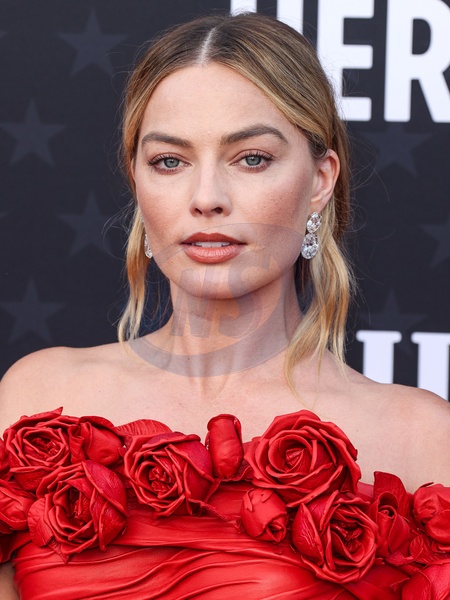 SANTA MONICA, LOS ANGELES, CALIFORNIA, USA - JANUARY 14: Margot Robbie wearing custom Balmain arrives at the 29th Annual Critics' Choice Awards held at The Barker Hangar on January 14, 2024 in Santa Monica, Los Angeles, California, United States., Credit:Xavier Collin / Avalon