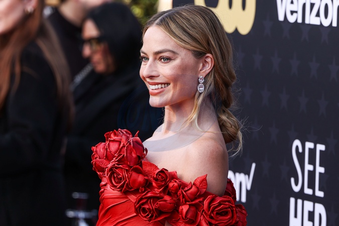 SANTA MONICA, LOS ANGELES, CALIFORNIA, USA - JANUARY 14: Margot Robbie wearing custom Balmain arrives at the 29th Annual Critics' Choice Awards held at The Barker Hangar on January 14, 2024 in Santa Monica, Los Angeles, California, United States., Credit:Xavier Collin / Avalon