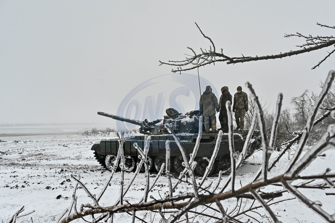 ZAPORIZHZHIA SECTOR, UKRAINE - JANUARY 11, 2024 - A T-72 tank is seen during special training of the soldiers of the 128th separate mountain assault brigade of the Zakarpattia Army of the Armed Forces of Ukraine to maintain professional skills, Zaporizhzhia sector, south-eastern Ukraine., Credit:Dmytro Smolienko / Avalon