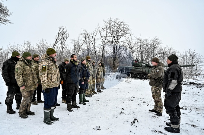 ZAPORIZHZHIA SECTOR, UKRAINE - JANUARY 11, 2024 - Soldiers of the 128th Separate Mountain Assault Brigade of the Zakarpattia Land Forces of the Armed Forces of Ukraine are seen during special training exercises to maintain professional skills involving T-72 tanks, Zaporizhzhia sector, south-eastern Ukraine., Credit:Dmytro Smolienko / Avalon