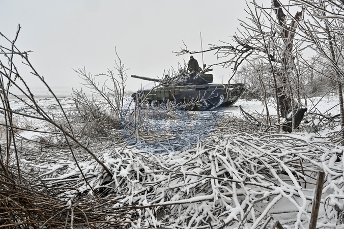 ZAPORIZHZHIA SECTOR, UKRAINE - JANUARY 11, 2024 - A T-72 tank is seen during special training of the soldiers of the 128th separate mountain assault brigade of the Zakarpattia Army of the Armed Forces of Ukraine to maintain professional skills, Zaporizhzhia sector, south-eastern Ukraine., Credit:Dmytro Smolienko / Avalon