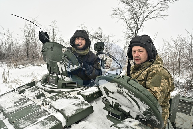 ZAPORIZHZHIA SECTOR, UKRAINE - JANUARY 11, 2024 - Soldiers of the 128th Separate Mountain Assault Brigade of the Zakarpattia Land Forces of the Armed Forces of Ukraine are lined up during special training exercises to maintain professional skills involving T-72 tanks, Zaporizhzhia sector, south-eastern Ukraine., Credit:Dmytro Smolienko / Avalon