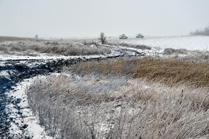 ZAPORIZHZHIA SECTOR, UKRAINE - JANUARY 11, 2024 - A T-72 tank is seen during special training of the soldiers of the 128th separate mountain assault brigade of the Zakarpattia Army of the Armed Forces of Ukraine to maintain professional skills, Zaporizhzhia sector, south-eastern Ukraine., Credit:Dmytro Smolienko / Avalon