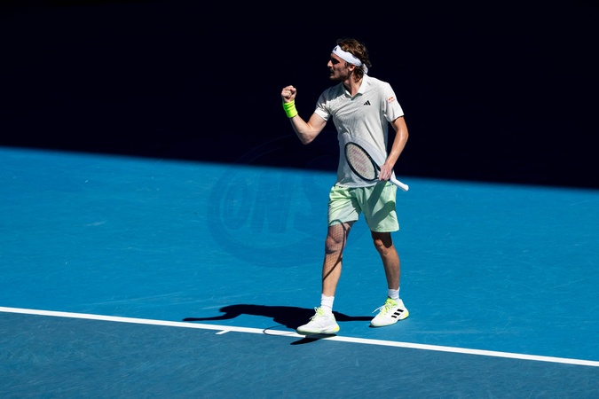 Stefanos Tsitsipas lors du premier tour de l'Open d'Australie, à Melboune, le 15 janvier 2024. © Virginie Bouyer/Panoramic/Bestimage First Round 2024 Australian Open at Melbourne Park in Melbourne, Australia, on January 15, 2024.