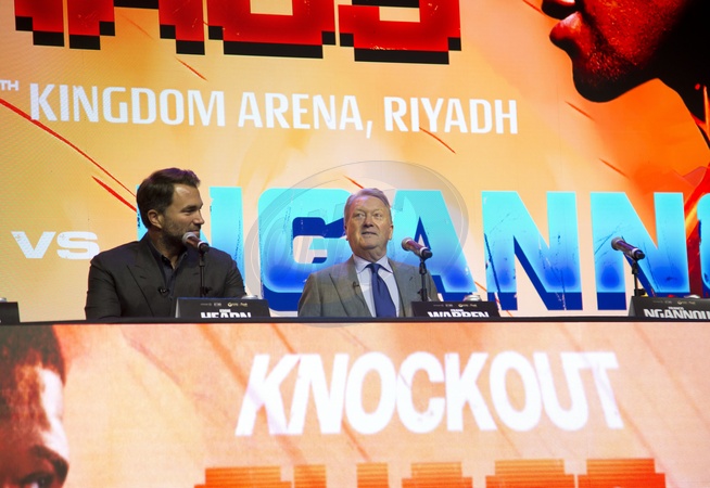 Anthony Joshua, Eddie Hearn, Frank Warren and Francis NgannouAnthony Joshua v Francis Ngannou press conference held at Outernet London in London, UK, 15 January 2024, Credit:Avalon