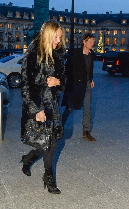 W dniu swoich 50. urodzin Kate Moss w towarzystwie swojego towarzysza Nikolaia von Bismarcka wraca do hotelu Ritz po przymiarki na Paryski Tydzień Mody