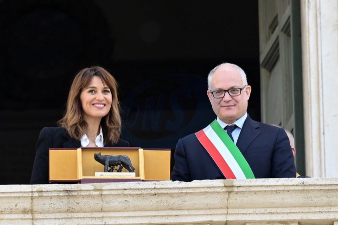 The mayor of Rome Roberto Gualtieri delivers the Capitoline Wolf award to the actress Paola Cortellesi, in recognition of her artistic career. Rome, Italy, 01/16/2024, Credit:Maria Laura Antonelli / Avalon