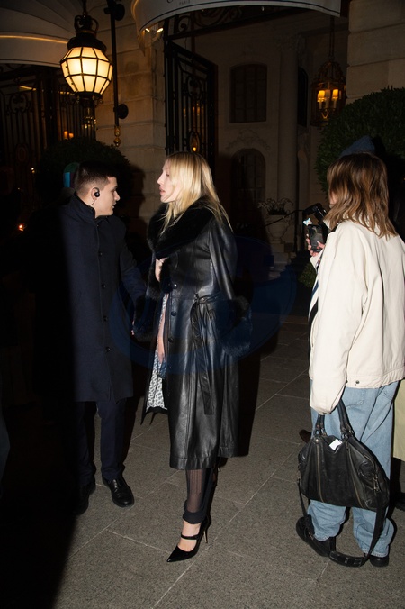Guest - Le jour de son 50ème anniversaire K.Moss, accompagnée de ses amis, sort de l'hôtel Ritz pour se rendre au restaurant "Laurent" à Paris, France, le 16 janvier 2024. Guest - On the day of her 50th birthday K.Moss, accompanied by her friends, leaves the Ritz hotel to go to the "Laurent" restaurant in Paris, France, on January 16, 2024.