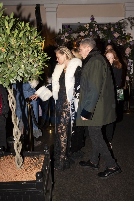 Kate Moss quitte le restaurant Laurent à Paris le jour de son cinquantième anniversaire le 16 janvier 2024. © Pierre Perusseau / Tiziano Da Silva / Bestimage Kate Moss leaves the Laurent restaurant in Paris on her fiftieth birthday, 16 January 2024.