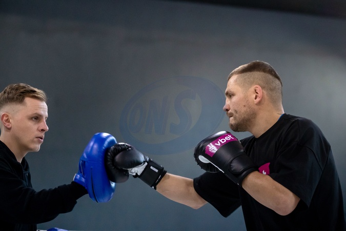 KYIV, UKRAINE - JANUARY 16, 2024 - Boxer, WBO International lightweight champion Denys Berinchyk (R) and his coach Yehor Holub are pictured during an open training session, Kyiv, capital of Ukraine., Credit:Pavlo_Bagmut / Avalon