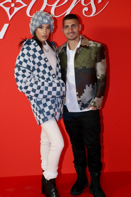 Jessica Aïdi Verratti et Marco Verratti - Photocall du Défilé de mode Louis Vuitton Homme, Collection Automne-Hiver 2024/2025 dans le cadre de la Fashion Week de Paris, France, le 16 Janvier 2024. © Rindoff / Borde / Bestimage Photocall of the Louis Vuitton Men's Fashion Show, Fall-Winter 2024/2025 Collection as part of Paris Fashion Week, France, January 16, 2024