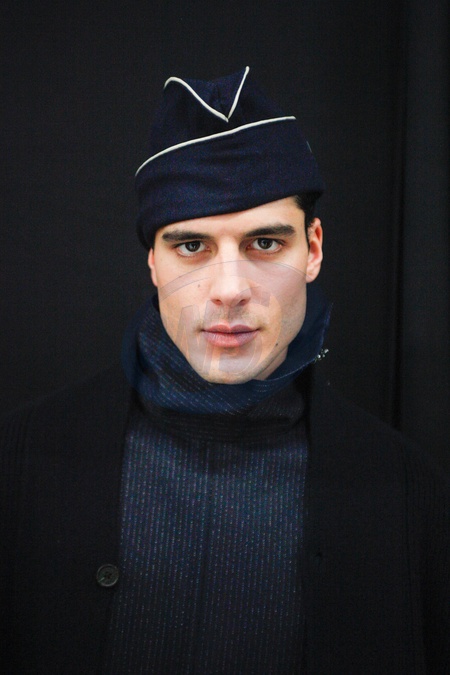 Emporio Armani Model On Backstage, Men, Milan Fashion Week 2024 Man Ready To Wear For Fall Winter, Fashion Show , Pret A Porter, Man, Herbst Winter Autumn Italyfashion outlook beauty face hair eyes makeup menMILMFW24, Credit:www.fashionpps.com / Avalon