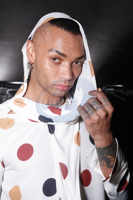 Jordan Luca Model On Backstage, Men, Milan Fashion Week 2024 Man Ready To Wear For Fall Winter, Fashion Show , Pret A Porter, Man, Herbst Winter Autumn Italyfashion outlook beauty face hair eyes makeup menMILMFW24, Credit:www.fashionpps.com / Avalon