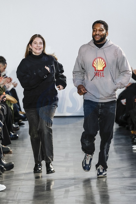 Les créateurs de mode Rushemy Botter et Lisi Herrebrugh - Défilé Botter Collection Homme Prêt-à-Porter Automne/Hiver 2024 lors de la Fashion Week de Paris (PFW), à La Maison des Métallos à Paris, France, le 17 janvier 2024. Fashion designers Rushemy Botter and Lisi Herrebrugh - Botter Collection Men's Fall/Winter 2024 Men for Paris during the Paris Fashion Week (PFW), at the Maison des Métallos in Paris, France, January 17, 2024.