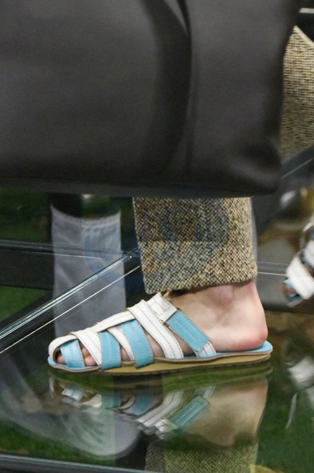 Prada Model On Catwalk, Men, Milan Fashion Week 2024 Man Ready To Wear For Fall Winter, Defile, Fashion Show Runway Collection, Pret A Porter, Modelwear, Modeschau, Man, Laufsteg Hebet Winter Autumn Italycloseup, accessories, details, face, hair, eyes catwalk fashion outlook beauty runway menMILMFW24, Credit:www.fashionpps.com / Avalon