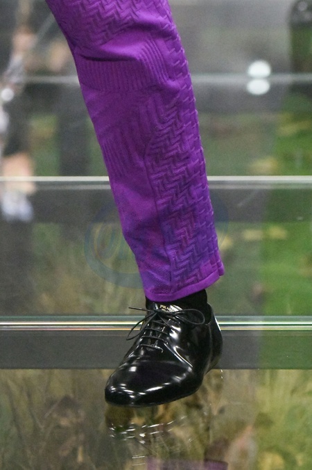 Prada Model On Catwalk, Men, Milan Fashion Week 2024 Man Ready To Wear For Fall Winter, Defile, Fashion Show Runway Collection, Pret A Porter, Modelwear, Modeschau, Man, Laufsteg Hebet Winter Autumn Italycloseup, accessories, details, face, hair, eyes catwalk fashion outlook beauty runway menMILMFW24, Credit:www.fashionpps.com / Avalon