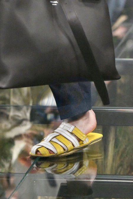 Prada Model On Catwalk, Men, Milan Fashion Week 2024 Man Ready To Wear For Fall Winter, Defile, Fashion Show Runway Collection, Pret A Porter, Modelwear, Modeschau, Man, Laufsteg Hebet Winter Autumn Italycloseup, accessories, details, face, hair, eyes catwalk fashion outlook beauty runway menMILMFW24, Credit:www.fashionpps.com / Avalon