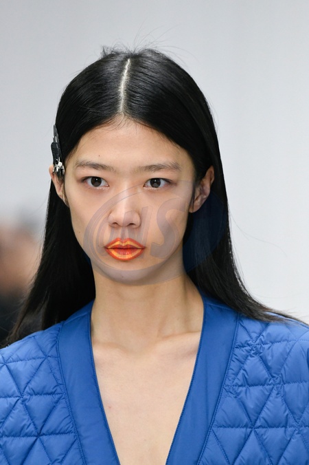K way Model On Catwalk, Men, Milan Fashion Week 2024 Man Ready To Wear For Fall Winter, Defile, Fashion Show Runway Collection, Pret A Porter, Modelwear, Modeschau, Man, Laufsteg Hebet Winter Autumn Italycloseup, accessories, details, face, hair, eyes catwalk fashion outlook beauty runway menMILMFW24, Credit:www.fashionpps.com / Avalon