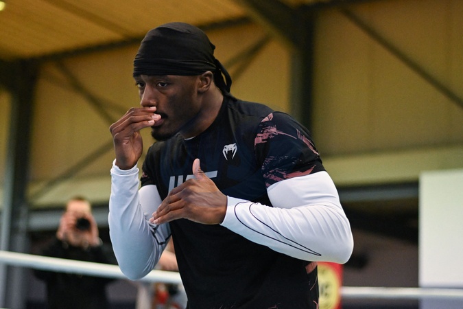 Boxer Bakary Samake trenuje w sali bokserskiej IBC w Champs sur Marne.