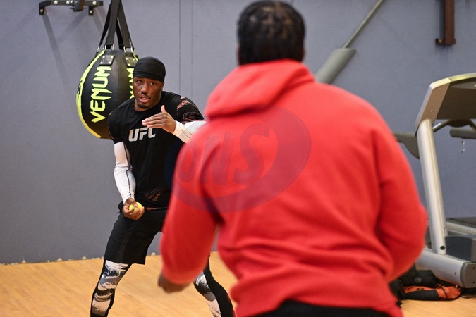 Boxer Bakary Samake trenuje w sali bokserskiej IBC w Champs sur Marne.