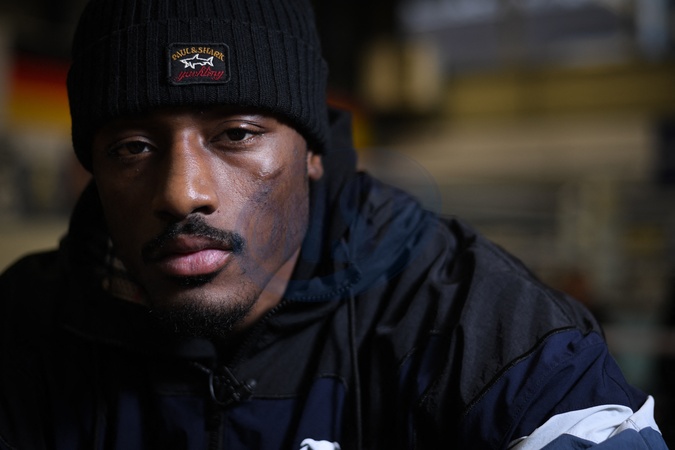 Boxer Bakary Samake trenuje w sali bokserskiej IBC w Champs sur Marne.