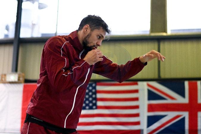Bokser Ahmed El Mousaoui trenuje na siłowni IBC Boxing w Champs sur Marne