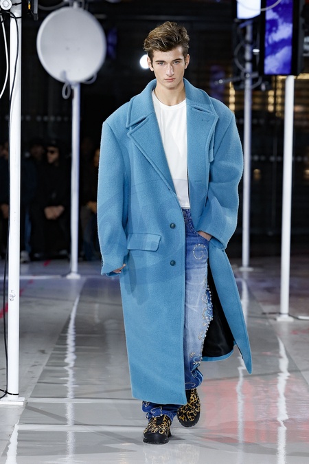 A model wearing an original creation from the winter 2024 ready to wear mens collections from the house of Bluemarble, Paris, France, 17/01/2024