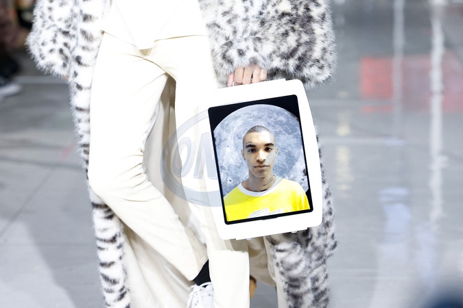 A model wearing an original creation from the winter 2024 ready to wear mens collections from the house of Bluemarble, Paris, France, 17/01/2024