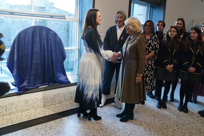 Queen Camilla opens the new 'Safe Space' during a visit to Aberdeen Art Gallery, as part of an initiative to provide help and guidance to people if they suspect someone is living with domestic abuse., Credit:Andrew Milligan / Avalon