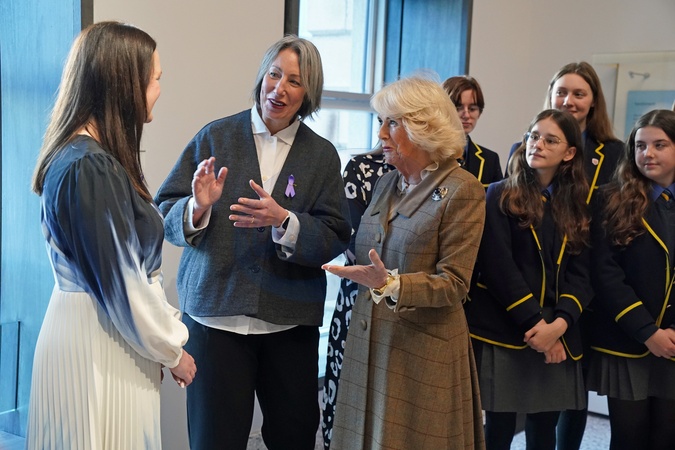 Queen Camilla opens the new 'Safe Space' during a visit to Aberdeen Art Gallery, as part of an initiative to provide help and guidance to people if they suspect someone is living with domestic abuse., Credit:Andrew Milligan / Avalon