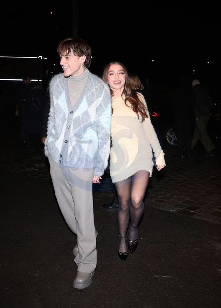 Zoi Lerma et Baron Schoenvogel - Arrivées des personnalités au défilé AMI collection homme automne/hiver 2024/2025 lors de la fashion week à Paris (PFW) le 19 janvier 2024. © Denis Guignebourg / Bestimage AMI - Alexandre Mattiussi Menswear Fall/Winter 2024-2025 show as part of Paris Fashion Week on January 18, 2024 in Paris, France.
