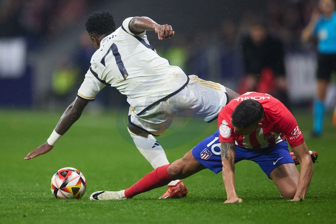 L'Atletico de Madrid bat le Real de Madrid (4-2) lors des huitièmes de finale de la Copa del Rey, la Coupe d'Espagne à Madrid le 18 janvier 2024. Vinicius Junior of Real Madrid CF battles for the ball with Nahuel Molina of Atletico de Madrid during the King's Cup Quarter Final match between Atletico de Madrid and Real Madrid CF at Civitas Metropolitano on January 18, 2024 in Madrid, Spain (Photo by: Alvaro Medranda/ Panoramic)