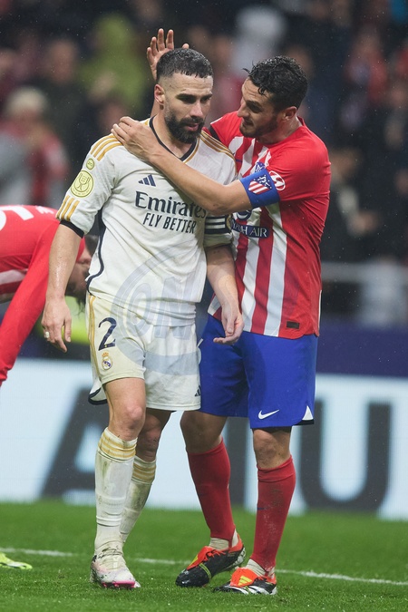 L'Atletico de Madrid bat le Real de Madrid (4-2) lors des huitièmes de finale de la Copa del Rey, la Coupe d'Espagne à Madrid le 18 janvier 2024. Daniel Carvajal of Real Madrid CF (L) talks to Koke of Atletico de Madrid (R) during the King's Cup Quarter Final match between Atletico de Madrid and Real Madrid CF at Civitas Metropolitano on January 18, 2024 in Madrid, Spain (Photo by: Alvaro Medranda/ Panoramic)