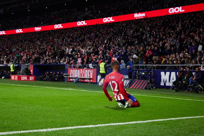 L'Atletico de Madrid bat le Real de Madrid (4-2) lors des huitièmes de finale de la Copa del Rey, la Coupe d'Espagne à Madrid le 18 janvier 2024. Samuel Lino of Atletico de Madrid celebrating the opening goal with his teammates during the King's Cup Quarter Final match between Atletico de Madrid and Real Madrid CF at Civitas Metropolitano on January 18, 2024 in Madrid, Spain (Photo by: Alvaro Medranda/ Panoramic)