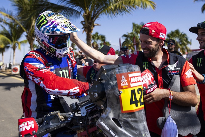 VAN BEVEREN Adrien (fra), Monster Energy Honda Team, Honda, Moto, Motul, FIM W2RC, portrait, Team celebration during the Final Podium of the Dakar 2024 on January 19, 2024 in Yanbu, Saudi Arabia -