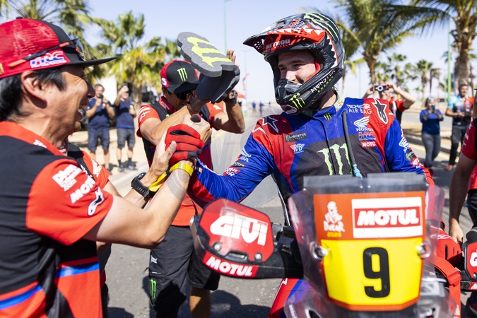 BRABEC Ricky (usa), Monster Energy Honda Team, Honda, Motul, Moto, FIM W2RC, portrait, Team celebration during the Final Podium of the Dakar 2024 on January 19, 2024 in Yanbu, Saudi Arabia -