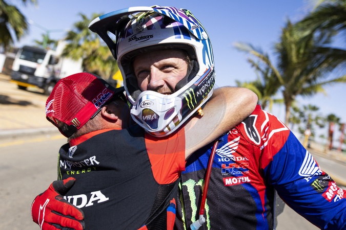 VAN BEVEREN Adrien (fra), Monster Energy Honda Team, Honda, Moto, Motul, FIM W2RC, portrait, Team celebration during the Final Podium of the Dakar 2024 on January 19, 2024 in Yanbu, Saudi Arabia -