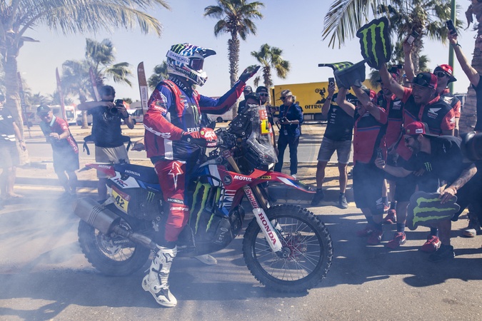 VAN BEVEREN Adrien (fra), Monster Energy Honda Team, Honda, Moto, Motul, FIM W2RC, portrait, Team celebration during the Final Podium of the Dakar 2024 on January 19, 2024 in Yanbu, Saudi Arabia -