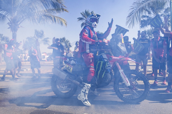 VAN BEVEREN Adrien (fra), Monster Energy Honda Team, Honda, Moto, Motul, FIM W2RC, portrait, Team celebration during the Final Podium of the Dakar 2024 on January 19, 2024 in Yanbu, Saudi Arabia -
