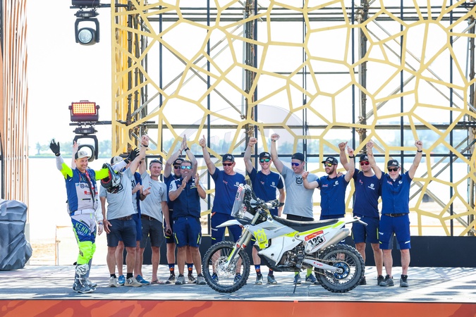 120 VAN DYCK Joris (bel), HT Rally Raid Husqvarna Racing, Husqvarna, Motul, Moto, action during the Final Podium of the Dakar 2024 on January 19, 2024 in Yanbu, Saudi Arabia -