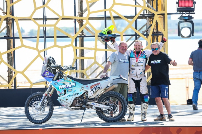 129 HERBET Sébastien (fra), Team Dumontier Racing, Husqvarna, Moto, during the Final Podium of the Dakar 2024 on January 19, 2024 in Yanbu, Saudi Arabia -