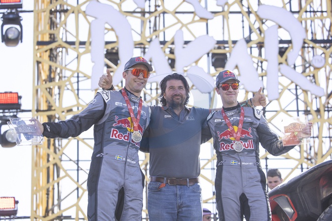 207 EKSTROM Mattias (swe), BERGKVIST Emil (swe), Team Audi Sport, Audi RS Q E-Tron E2, FIA Ultimate, aFIA W2RC, ambiance during the Final Podium of the Dakar 2024 on January 19, 2024 in Yanbu, Saudi Arabia - - L'Espagnol C.Sainz remporte le Dakar 2024 devant le Belge G.De Mevius et le Français S.Loeb à Yanbu (Arabie Saoudite), le 19 janvier 2024. © Julien Delfosse / Panoramic / Bestimage The Spanish C.Sainz wins the 2024 Dakar ahead of the Belgian G.de Mevius and the Frenchman S.Loeb in Yanbu (Saudi Arabia), January 19th, 2024.